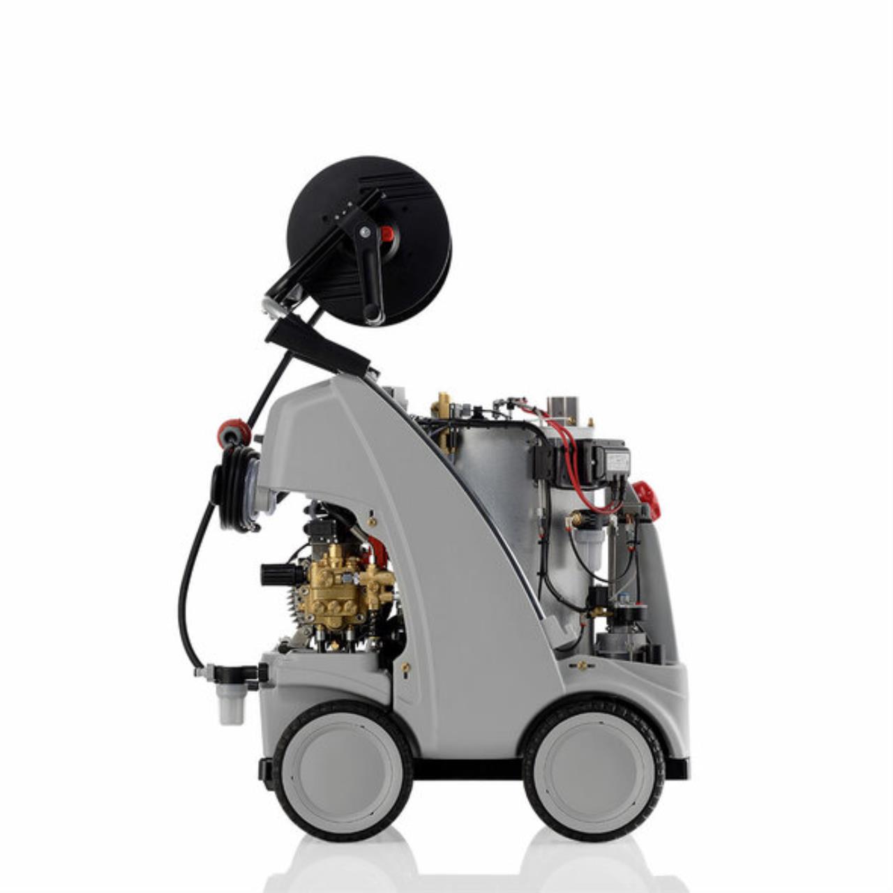 Kompaktes Bauformat, Arbeitsdruck bis zu 180 bar, große Räder mit Vollgummibereifung und Rammschutz vorne und hinten – das zeichnet die therm C Heißwasser-Hochdruckreiniger von Kränzle aus. Diverse Sicherheitseinrichtungen sorgen für einen jederzeit sicheren Betrieb des Hochdruckreinigers. Die Modelle der therm-C-Serie sind mit und ohne Schlauchtrommel erhältlich.