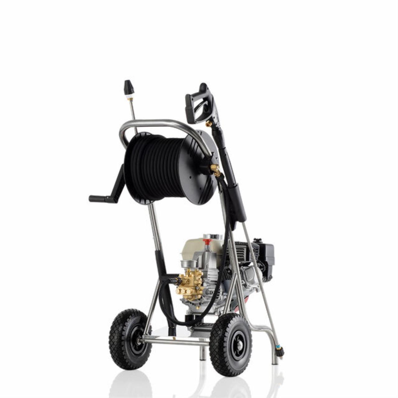 Mit Kränzle Hochdruckreinigern mit Benzinmotoren sind Sie auf der sicheren Seite, wenn höchste Reinigungskraft unabhängig von der Stromversorgung gefragt ist. Die Profi-Jet-Serie überzeugt durch ein äußerst robustes Edelstahl-Fahrgestell, einen servicefreundlichen Honda-Motor mit integrierter Ölmangelsicherung und einem praktischen Ordnungssystem für Hochdruckpistole und Reinigungslanzen. Die optionale Drehzahlregulierung reduziert Geräusch und Kraftstoffverbrauch.