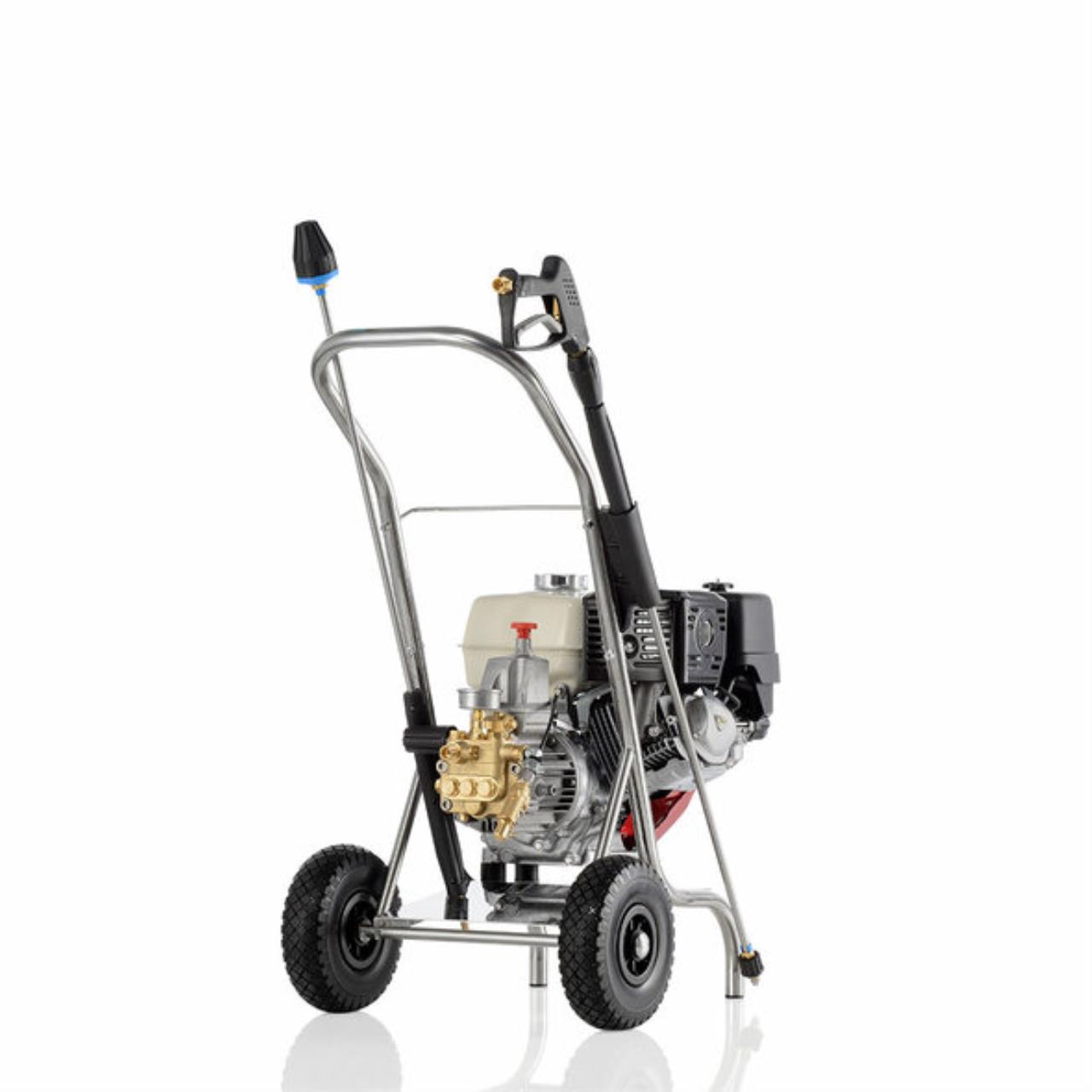 Mit Kränzle Hochdruckreinigern mit Benzinmotoren sind Sie auf der sicheren Seite, wenn höchste Reinigungskraft unabhängig von der Stromversorgung gefragt ist. Die Profi-Jet-Serie überzeugt durch ein äußerst robustes Edelstahl-Fahrgestell, einen servicefreundlichen Honda-Motor mit integrierter Ölmangelsicherung und einem praktischen Ordnungssystem für Hochdruckpistole und Reinigungslanzen. Die optionale Drehzahlregulierung reduziert Geräusch und Kraftstoffverbrauch.