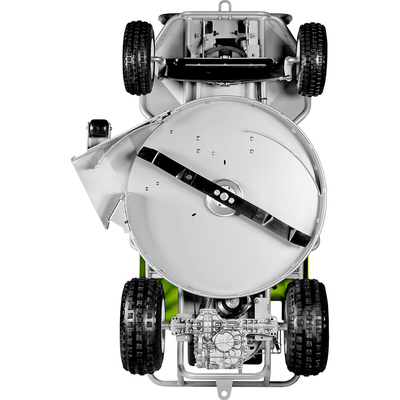 Die schwingend aufgehängten Endstücke der Messer sind schlagfest, das spezielle Schnittprofil des Messers gewährleistet ein präzises Schnittbild unter jeglicher Bedingung. Die Seitenauswurf Schnittmodalität ist ideal für das Mähen hoher Grasarten, das Mähgut wird in das Seitenauswurfgehäuse aus Metall befördert. das hervorstehende vorschriftgemäß gebaute Gehäuse garantiert die optimale Sicherheit des Nutzers und ist weiterhin mit einer Anti-Skalp Rolle bestückt. Die Mulching Schnittmodalität. ist für solche Gelände ideal. wo der Mähvorgang häufig und regelmäßig erfolgt. es zerkleinert das Mähgut und begünstigt die Wiederaufnahme der organischen Nahrung des Bodens. Darüber hinaus kann man die Mulching Schnittmodalität nach dem ersten Mähvorgang mit Seitenauswurf anwenden für die Ausführung von Finish-Arbeiten und um ein hochwertiges Schnittbild zu erzielen. Das aus Stahl bestehende Mähdeck scheut keine Hindernisse. Das Seitenauswurfgehäuse ist sehr robust und wurde mit Schrauben befestigt. Die Messerwelle mit einem großen Durchmesser und der Schnittübertragung gewährleisten Zuverlässigkeit auch unter den schwierigsten Arbeitsbedingungen über lange Zeiträume und in absoluter Sicherheit. Als weitere Rücksichtmaßnahme zur Verbesserung der Zuverlässigkeit und der Schlagfestigkeit. sind Scharniere im Innern derselben positioniert.
