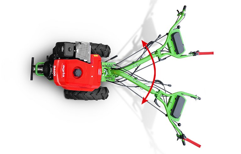 Drehbarer Lenkholm gewährleistet einen einfachen Wechsel vom Heck- zum Frontanbau und macht die Maschine so universell nutzbar