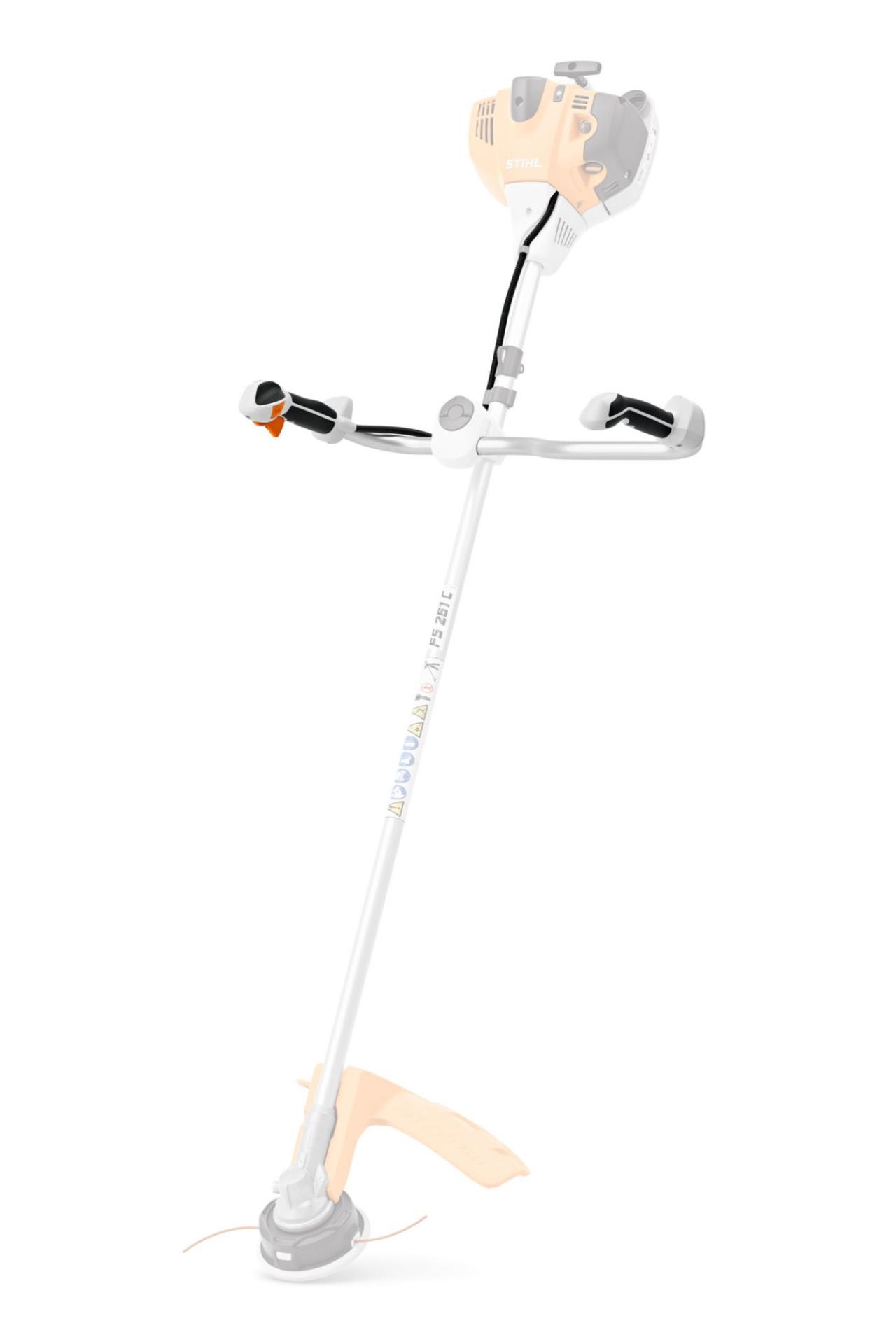 Der Gashebel mit Stopptaster im Einhand-Multifunktionsgriff überzeugt sowohl beim Mähen als auch beim Häckseln durch eine einfache, ermüdungsarme Handhabung und erhöht den Bedienkomfort Ihrer Motorsense.