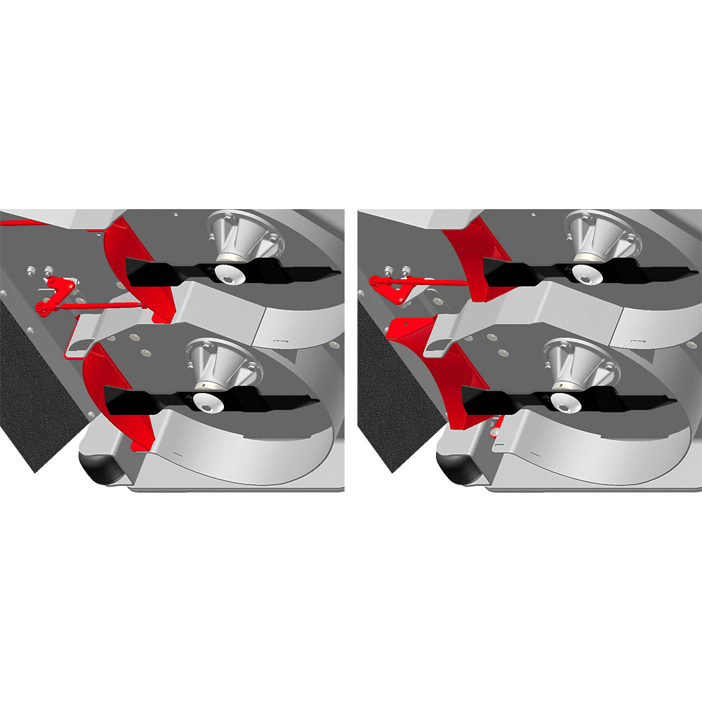 Der Übergang von der Modalität Mulchen zur Modalität Heckauswurf ist ein Kinderspiel mit Hilfe eines "Quick Shift" Hebels, welcher bequem vom Fahrersitz aus bedient wird.