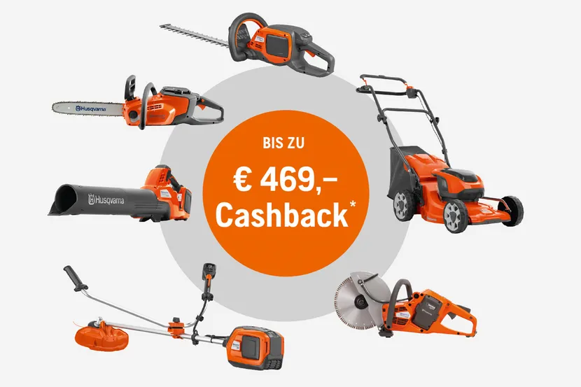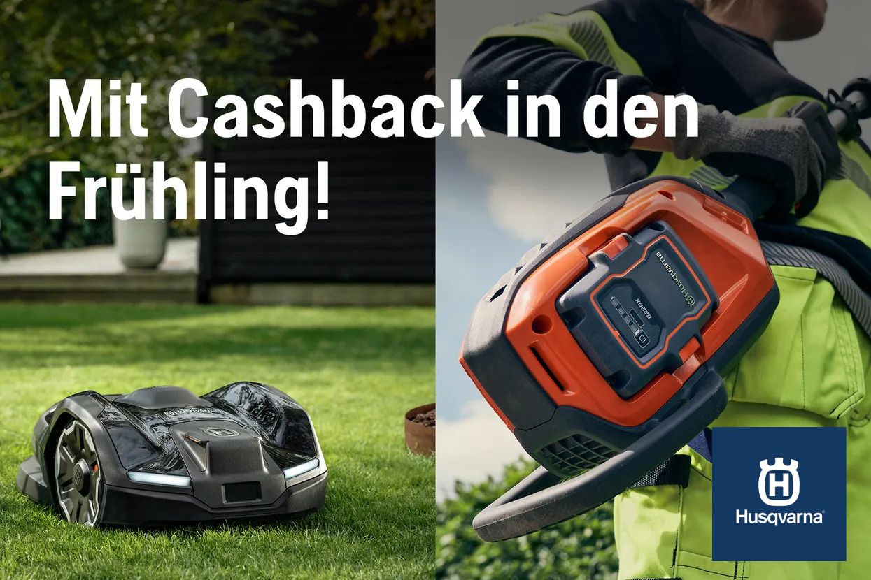Zwei Mal Cashback während der Husqvarna Frühjahrsaktion: Sie liebäugeln mit einem neuen Mähroboter oder Akku-Gerät von Husqvarna? Bis zu 469 € Cashback können Sie sich ab dem 1. März 2025 beim Kauf eines Mähroboters oder Akkugeräts sichern. Entdecken Sie außerdem weitere Geräte zu reduzierten Aktionspreisen.
